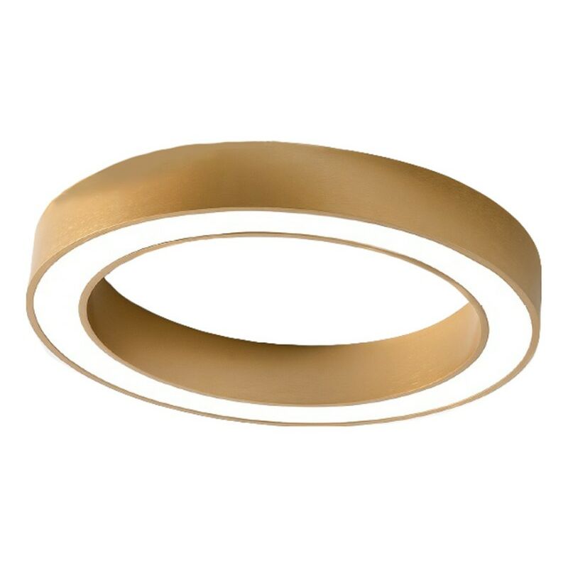 Plafoniera semplicemente tonda ad illuminazione diretta con sorgente luminosa a led. Una lampada da soffitto o da parete che decora la parete sottostante e di facile adattamento in ambienti come l'ingresso, il corridoio, il soggiorno, per zone di passaggio o di sosta. Illuminare con un tocco di colore con estrema ed essenziale semplicità. Plafoniera led Gea Luce FLOR PM ORO Lampada soffitto-parete, alluminio, oro spazzolato, 50W LED, 3000°K Finitura ORO SPAZZOLATO. Diffusori in metacrilato bianco opale. Driver elettronico integrato nell'apparecchio. Diametro 60 cm, profondità 8 cm. Il flusso luminoso in tonalità di luce calda è di 3600Lm. Il lumen (simbolo Lm) misura l'intensità di un flusso luminoso, artificiale o naturale che sia. In semplici parole ci indica la quantità di luce emessa dalla nostra lampadina e ci permette di scegliere il prodotto adatto alle nostre esigenze, considerando fattori come l'altezza dal suolo, l'ampiezza della porzione illuminata e persino l'atmosfera che