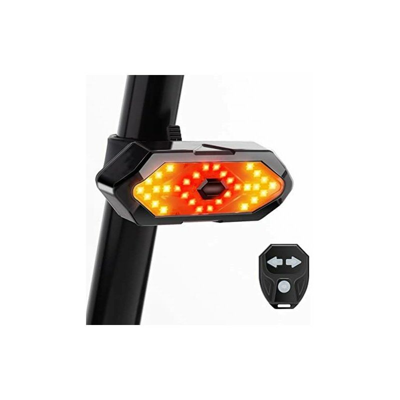 Luminoso e visibile: il fanale posteriore della bicicletta è composto da 32 LED di alta qualità, che forniscono un'indicazione luminosa e un ampio raggio visivo ad angolo.La luce può essere vista chiaramente anche a distanza, mantenendoti al sicuro durante la notte . 5 opzioni di modalità luce: il fanale posteriore della bici presenta un segnale di svolta a sinistra, un segnale di svolta a destra e una luce rossa sempre accesa, una luce rossa lampeggiante o tutti lampeggianti. Puoi scegliere diverse modalità di illuminazione in base alla situazione per soddisfare le tue numerose esigenze. Batteria ricaricabile da 900 mAh e impermeabile - La batteria ricaricabile integrata da 900 mAh può essere utilizzata per caricare la parte posteriore luce tramite USB. Questa luce posteriore per bicicletta è impermeabile e può essere utilizzata anche in caso di pioggia per la migliore protezione. (non deve essere immerso in acqua) Facile da installare e utilizzare: il fanale posteriore è molto