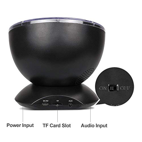 Versione di aggiornamento: Nuova funzione - Telecomando, 45 gradi regolabile, tasto di tocco, Costruito in Ipnosi Musica, carta di TF, Beautiful and Romantic 7 luci colorate. Il telecomando lo rende conveniente per voi per controllare il proiettore dell'onda Night Light Ocean: facile accesso per accendere / spegnere e facile regolare il volume o cambiare la musica di ipnosi.
