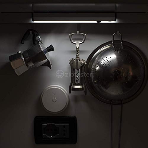 Reglette led con batteria ricaricabile al litio 3,7V. Durata in ore: 30000h. Modalità di funzionamento: acceso, automatico, spento. Struttura in alluminio con diffusore in plastica. Sensore di movimento PIR. Cavo ricarica USB. Protezione IP20. Accessori per fissaggio: 2 viti a tassello, attacco magnetico installabile con biadesivo (preapplicato).