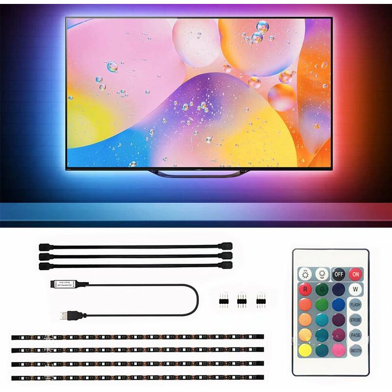 Le ultime strisce LED modulari: la nuova generazione di bande a LED 5050 RGB si adatta a telai TV a 40-60 pollici ed è abbastanza lungo per la maggior parte dei televisori. Queste band possono anche essere tagliate in piccoli pezzi lungo la linea di taglio senza danni. Super RF Telecomando: non è necessario puntare il dispositivo e può penetrare ostacoli, come le pareti. Rispetto al telecomando a infrarossi, è facile da usare e prestazioni superiori. dimmerabile: una varietà di bianchi freddi, una varietà di modalità dinamiche e una varietà di modalità statiche. La velocità e la luminosità sono regolabili, che possono proteggere meglio i tuoi occhi. La barra luminosa non può emettere colori diversi allo stesso tempo nastro resistente: A differenza di altri nastri LED, usiamo ad alta viscosità e adesivi ad alta viscosità, che non lascerà macchie residue dopo il ritiro. DC 5V alimentato da USB: bassa tensione operativa, chiave di sicurezza. Riceverai un nastro a LED da 4 * 0,5 m con