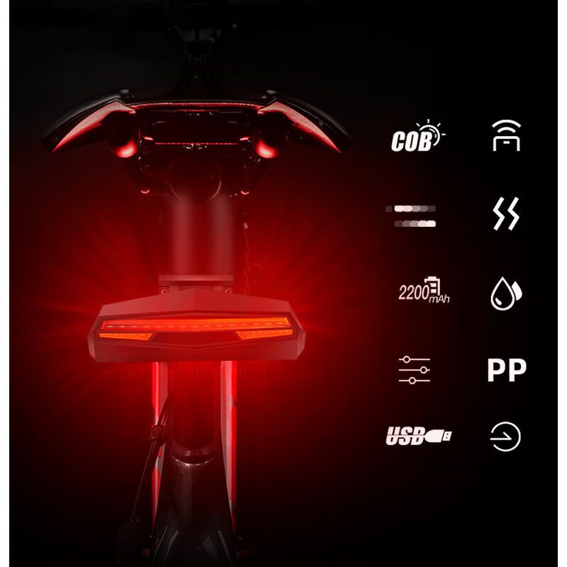 Nome: luce di sicurezza laser per bicicletta multifunzionale Dimensioni: 110 * 65 mm Quando si guida un bigycle, quando l'azione frenante è corretta, la luce del tempo è altamente ottimizzata per avvertire chi è molto indietro LED rosso ad alta luminosità StreamLined, luminosità 85lux, distanza di illuminazione: 100M Adatto per l'uso in ambienti esterni da luce a pioggia moderata, non immergere il prodotto in acqua o usarlo in caso di forti piogge, ambiente;