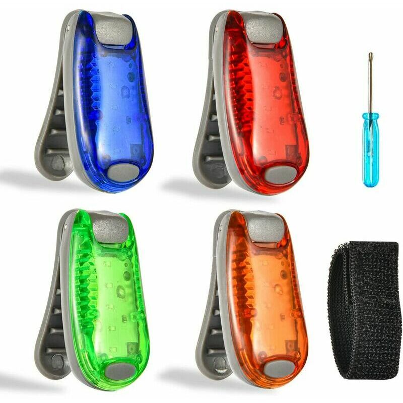 Luci di sicurezza a LED: LED lampeggianti Include: 4 luci di marcia (rossa, verde, arancione e blu). Materiale della luce di sicurezza a LED: luci sportive all'aperto realizzate in materiale ABS di alta qualità, resistente e impermeabile, può essere utilizzato anche nei giorni di pioggia. Due batterie CR2032 sono incluse nella luce di sicurezza per fornire fino a 60 ore di autonomia. Luce di sicurezza a LED: cinque sfere luminose a LED, tre modalità di luce (luce lunga, flash veloce, flash lento), luce accattivante, in modo che altri utenti della strada possano trovarti in tempo quando la situazione di illuminazione non è molto buona. Facile da usare: la luce di marcia può essere installata su zaini, vestiti, caschi, cinture, collari per animali domestici e altri oggetti utilizzando il design con clip posteriore.È piccolo e leggero e può essere portato in giro.br/>Luci di sicurezza a LED Usi: ideali per corridori, scalatori, esploratori all'aperto, animali domestici, passeggini, ecc.