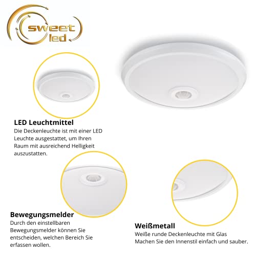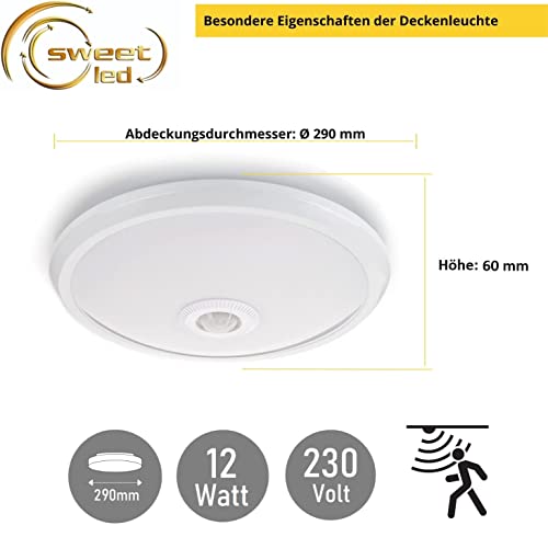 Luce a LED da soffitto, colore bianco tenue, con sensore rilevatore di movimento a 360°;