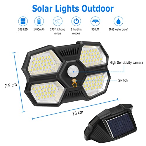 Luce Solare Esterno,108 LED 9000LM Luce Solare Sensore di Movimento Faretti a Led Solari IP65 Impermeabili per Recinzione Del Giardino Del Garage-2 pezzi