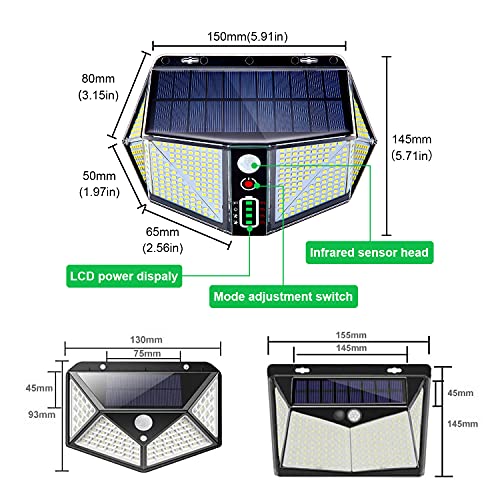 【IP65 impermeabile e durevole】Il design impermeabile più potente e professionale per una luce solare. Realizzate in ABS di alta qualità, le luci solari sono resistenti al calore. E il livello di impermeabilità IP65 con il bordo impermeabile a doppio strato può resistere a tutti i tipi di condizioni meteorologiche avverse.perfetto per giardini, garage, passi carrai, porte anteriori, cortili, muri e altro.