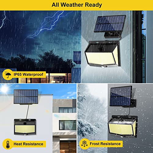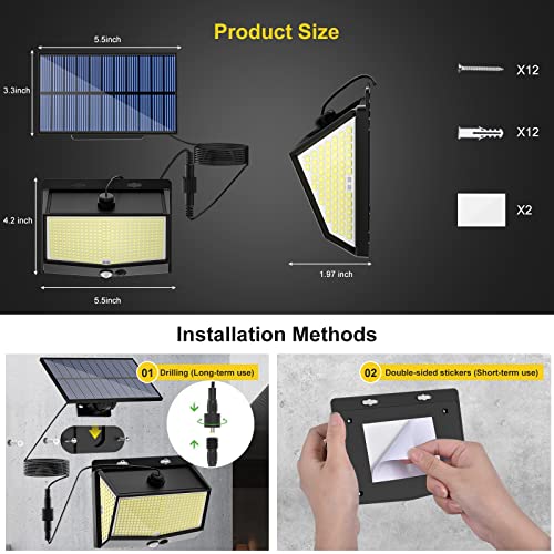【2023 Luci solari di ultima generazione】 Godetevi le prestazioni impareggiabili di 468 perle LED super luminose a risparmio energetico! Il design a 3 lati copre un angolo ultra ampio, fornendo un angolo di illuminazione di 270° per le luci solari da esterno. Quando è completamente carica, può fornire fino a 10-12 ore di illuminazione al giorno per illuminare le vostre notti.