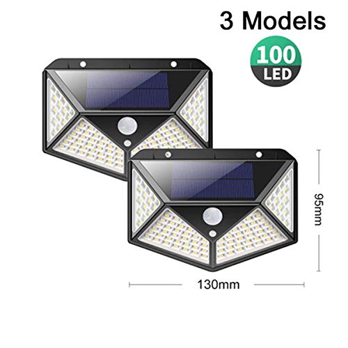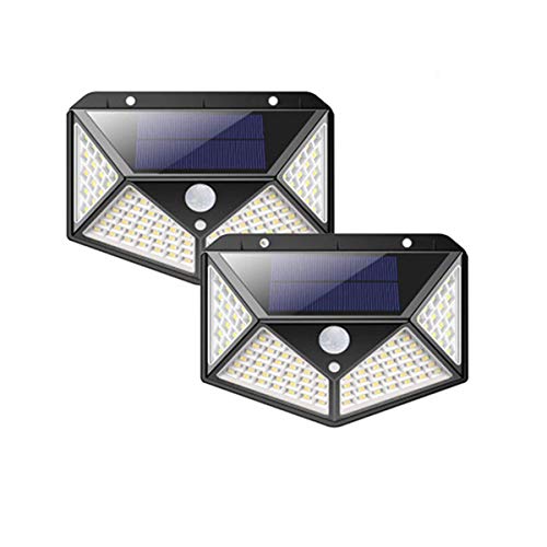 Luce Solare LED Esterno, Luce Solare LED Esterno con Sensore di Movimento Faretti Solari A 100 LED da Esterno 270° IP65 Impermeabile 3 modalità Lampada Solare da Esterno per Giardino Parete,2pack