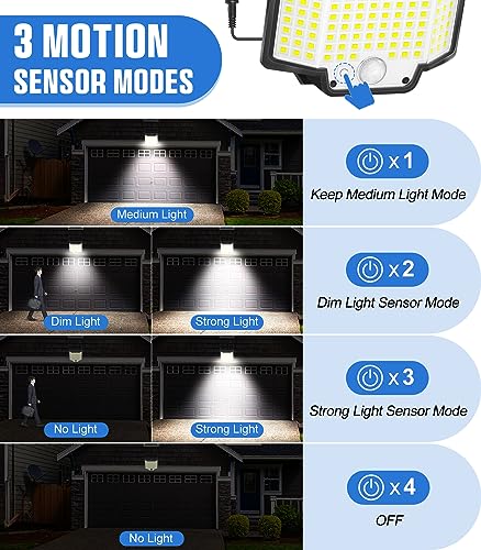 Luce Solare Led Esterno con Sensore di Movimento - 166 Leds Lampada Solare Esterna IP65 Impermeabile Faretti Solari Esterne Luci Giardino Faretto Esterni per Interno Illuminazione