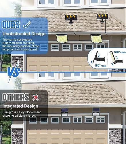 【Pannello solare diviso】Questa luci da esterno giardino solari utilizza un design diviso che collega il pannello solare alle luce solare led esterno con sensore di movimento con un cavo di 5 metri. Il pannello solare e il corpo della lampada possono essere installati separatamente, installare il pannello di ricarica solare in un luogo soleggiato e la lampada solare può essere utilizzata all'interno o all'esterno.