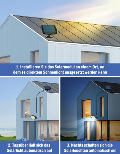 Facile da installare: puoi facilmente montare la lampada solare alla parete con le viti in dotazione, nessun cablaggio necessario. L'altezza di montaggio ideale è di 1,8 fino a 2,5 m. Questa luce solare è adatta per il montaggio su porte, balconi, garage, recinzioni, ville, scale, corridoi.