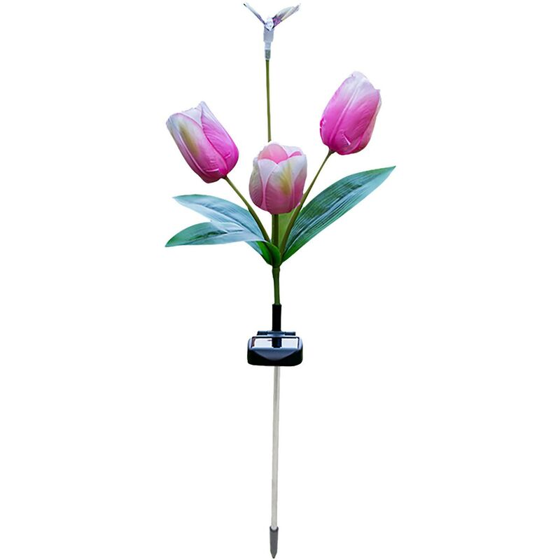 4 LED Flower Solar Light Color LED Garden Decoration Land Landscape Light Caratteristica: Illuminazione automatica: -Le luci esterne decorative da giardino esterne vengono caricate durante il giorno (assicurarsi l'interruttore è in posizione ON) e si accende automaticamente di notte dopo una carica completa, che può durare per 6-12 ore. Molto adatto per luci stradali e luci sotterranee, adatto per giardini, alberi, fiori, aiuole, recinzioni, marciapiedi, luci solari da giardino possono completare qualsiasi lavoro. Lampada libellula fiore tulipano: lampada libellula fiore tulipano, realizzata di tessuto morbido. Una lampada a forma di libellula a tulipano è composta da tre tulipani e una libellula. Le aste e le foglie sono supportate da fili di ferro, che sono molto flessibili e durevoli. Pannello solare impermeabile IP55: - IP55 impermeabile e ABS ad alta resistenza lo rendono adatto per uso esterno. Può isolare efficacemente acqua e nebbia. Adatto per uso esterno, non c'è bisogno