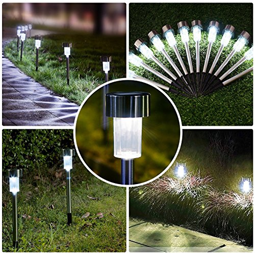 Luce Solare da Giardino, Wloomm 12 Pack Luci Per Paesaggio/Sentieri Luci Solari Impermeabili in Acciaio Inox Per Patio, Prato Inglese, Cortile, Passaggio Pedonale