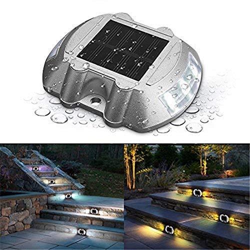 Luce Solare,Impermeabile Luce Solare da Esterno Road Stud segnapasso lampada Deck luci strada 3 LED Dusk to Dawn Dark On / Off alluminio super brillante