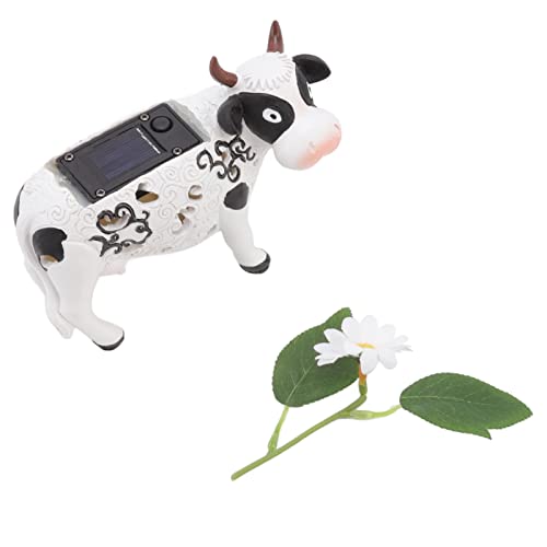 Luce solare della mucca della margherita, luce solare LED della mucca della margherita della resina intelligente, statue della lampada solare del giardino del LED che cambia colore della luce solare d
