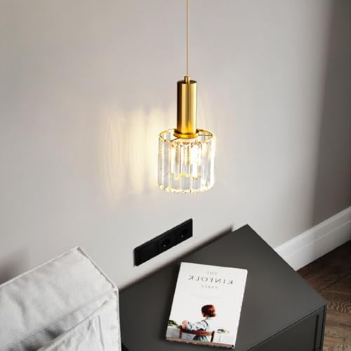 Luce a sospensione moderna in vetro di cristallo Luce a sospensione a soffitto semplice da comodino Lampadario Apparecchi di illuminazione a sospensione per soggiorno camera da letto (Gold,1-Light)