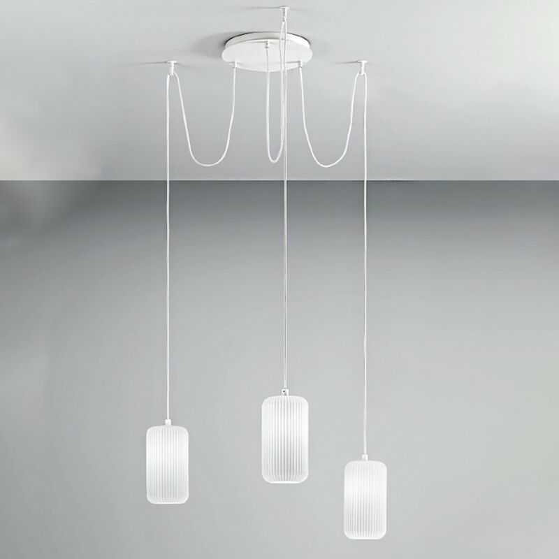 Sospensione moderna tre luci provvista di decentramenti che permettono di spostare la luce secondo le proprie necessità, sia per funzionalità o sia per un tocco ornamentale. Una lampada da sospensione ideale per ambienti moderni e contemporanei per illuminare piani d'appoggio come tavoli da pranzo, penisole, scrivanie oppure da posizione al centro della stanza. Una facile installazione per una resa di luce senza limiti. Sospensione vetro bianco Gea Luce RAIKA BT3 Lampadario moderno, vetri bianchi opalino, multiluce, attacco E27 LED Il lampadario Raika BT3 è provvisto di 3 portalampade attacco E27 per lampadine a led. COMPOSIZIONE: N. 1 - ALICE B T/3 (BI/NE) N. 3 - NUMA M SR (NE/BI) N. 3 - GSOBL11/GSOBL10 N. 3 - RAIKA V/G BIANCO OPALINO Alluminio, plastica e filo elettrico nero o bianco. Cavo elettrico 2x0.75mm è rivestito in stoffa. Il colore del vetro soffiato con decorazione a coste verticali, bianco opalino diffonde luce in modo omogenea nella stanza. A richiesta vetro verde