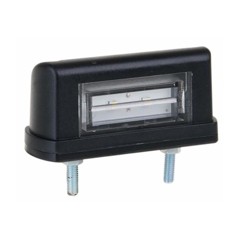 Per tutti i tipi di veicoli, in particolare: roulotte, fuoristrada, rimorchi, camion, furgoni. Luce di targa a LED 10-30v Precablato, viti incluse. Due potenti LED, bianchi, 12 o 24 V Luce di targa a LED Numero di LED: 2 Tensione: 10-30V Dimensioni: 84x30,5x33,5 mm - Viti: M5 incluse Interasse: 45 mm Precablato: 2X0,75 mm - Lunghezza 50 cm