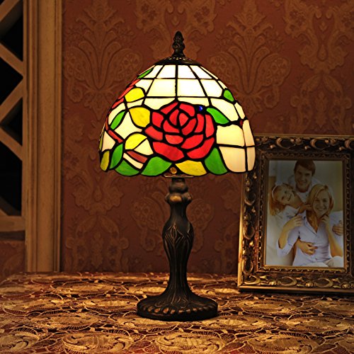 Luce Tiffany 8 pollici stile pastorale vetro istoriato Rosa Serie Lampada da tavolo Bedroom Light Reading