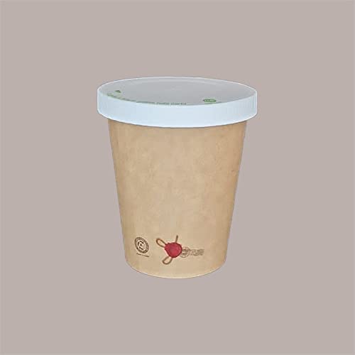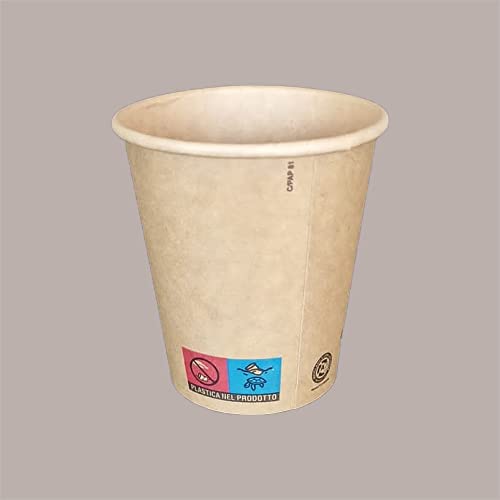 LUCGEL Srl 100 Pz Bicchiere Termico 7oz 200cc in Carta Marrone Naturale BC20 con Coperchio Bianco in Carta Chiuso