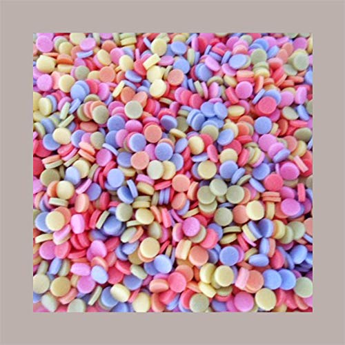 Decorazione di zucchero a forma di mini coriandolo, nei colori rosso, azzurro, giallo, verde e rosa.