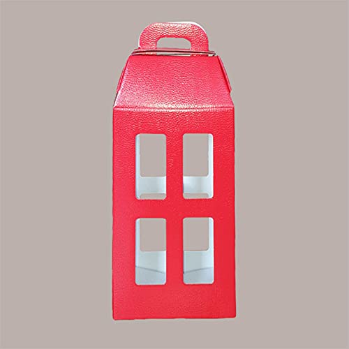 Lucgel Srl 10 pz Scatola Porta 2 Bottiglia in Carta Pelle Rosso a Forma di Lanterna Natale