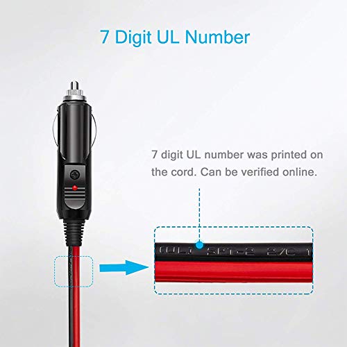 Lucha Prolunga per caricabatteria da Auto, Cavo di prolunga per accendisigari in Rame Puro da 6 Piedi Cavo da 12V 16AWG Spina di Alimentazione CC Auto fusa per Adattatore
