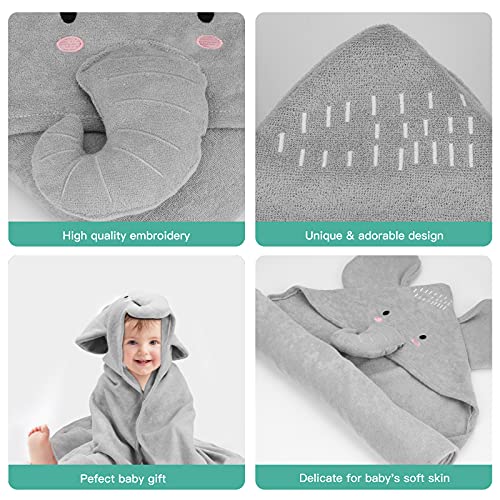 Luchild Asciugamano per Bambini con Cappuccio, Accappatoio Neonato morbido e assorbente per neonati e bambini piccoli, regalo doccia perfetto con un simpatico disegno di elefante - 90 * 90 cm