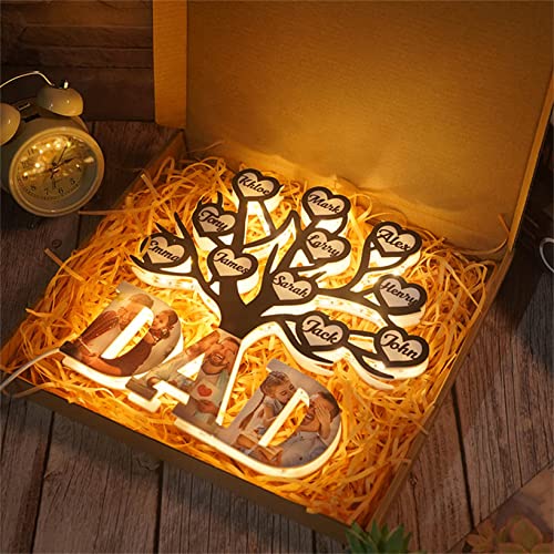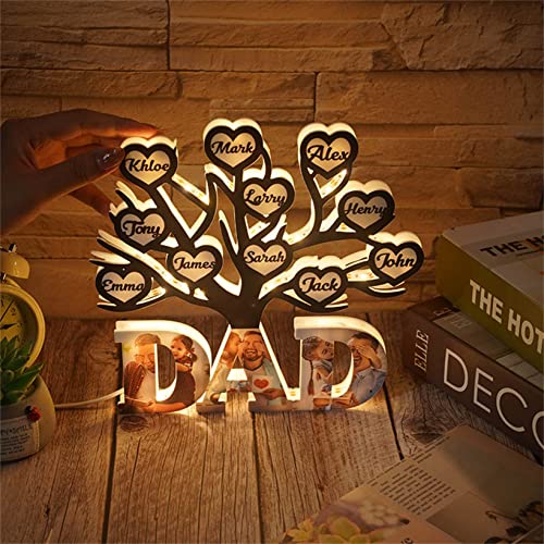Luci acriliche personalizzate per albero genealogico personalizzate 1-12 nomi dei bambini Albero della vita Luce notturna Papà Lampada LED Decorazione per la festa del papà