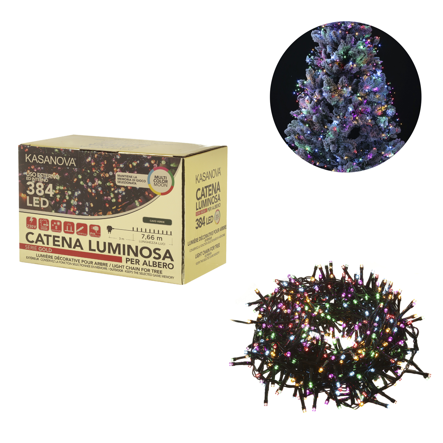 Crea una magica atmosfera con questa catena luminosa a luce colorata, adatta sia per interno che per esterno. Il filo di luci è facile da posizionare sui rami del tuo albero di Natale e grazie al controller integrato puoi impostare e memorizzare 8 diversi giochi di luce per un effetto davvero suggestivo! Potrai utilizzare i 328 microled anche per arricchire il tuo presepe e altre decorazioni sia in casa che sul balcone o in giardino. L'estensione della catena di luci copre 7,66 metri ed è composta da cavo verde di 3 metri.