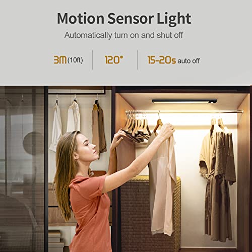 Luci Armadio, Luce Armadio 72LED con Luci Notturne Sensore di Movimento, Batteria Ricaricabile, Luce LED con Striscia Magnetica Adesiva, per Armadio, Scale, Corridoi, Cucina, Garage (Luce Calda)