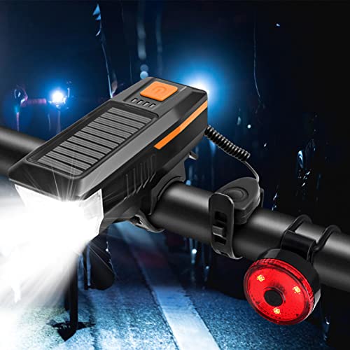 Luci per bici per la guida notturna - Set di luci per bicicletta con faro anteriore e fanale posteriore posteriore - Accessori per bici di ricarica USB da 400LM ad energia solare impermeabili Leryveo