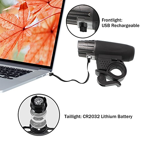 【 USB ricaricabile 】 questa bicicletta luce ha una batteria ricaricabile integrata e può essere ricaricata tramite cavo USB. Nota: solo la luce anteriore è ricaricabile tramite USB. 2 piccole luci sono alimentato da batterie CR2032.