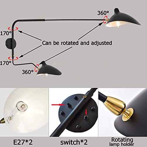 Illuminazione multipla: Questo spot vintage muro è stato progettato con bracci oscillanti a doppia regolazione e paralume orientabile in modo che la direzione della luce può essere regolata regolando l'angolo della luce utilizzandolo come una lampada a soffitto, lampada da parete o la luce di notte nel soggiorno, camera da letto, officina eccetera.