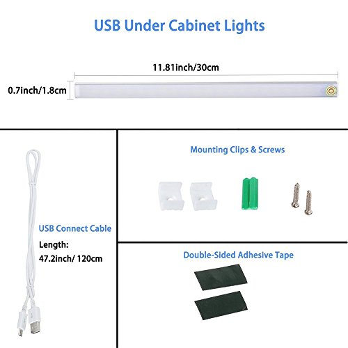 Luci per Cucina LED Barra Luminosa Lampada da Parete Touch Design Dimmerabile 30CM USB Powered Lampada di illuminazione Bianco Luce Notturna per illuminazione di armadi soffitte scale bianco caldo