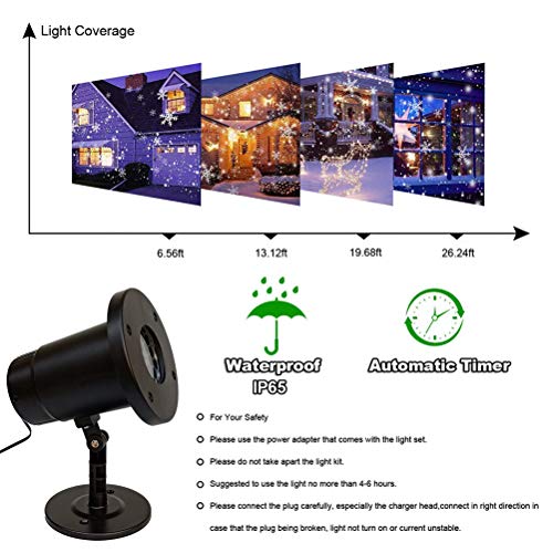 ▶ [Facile da installare e utilizzare] - Facile da installare e utilizzare: il proiettore di Natale viene fornito con un picchetto, un cavo di alimentazione, una piastra di montaggio e una punta lunga per una facile installazione. Migliore distanza di progetto: 2-8m (6.56-26.24). Posiziona la luce del proiettore a fiocco di neve fuori dalla casa o installala sul desktop.
