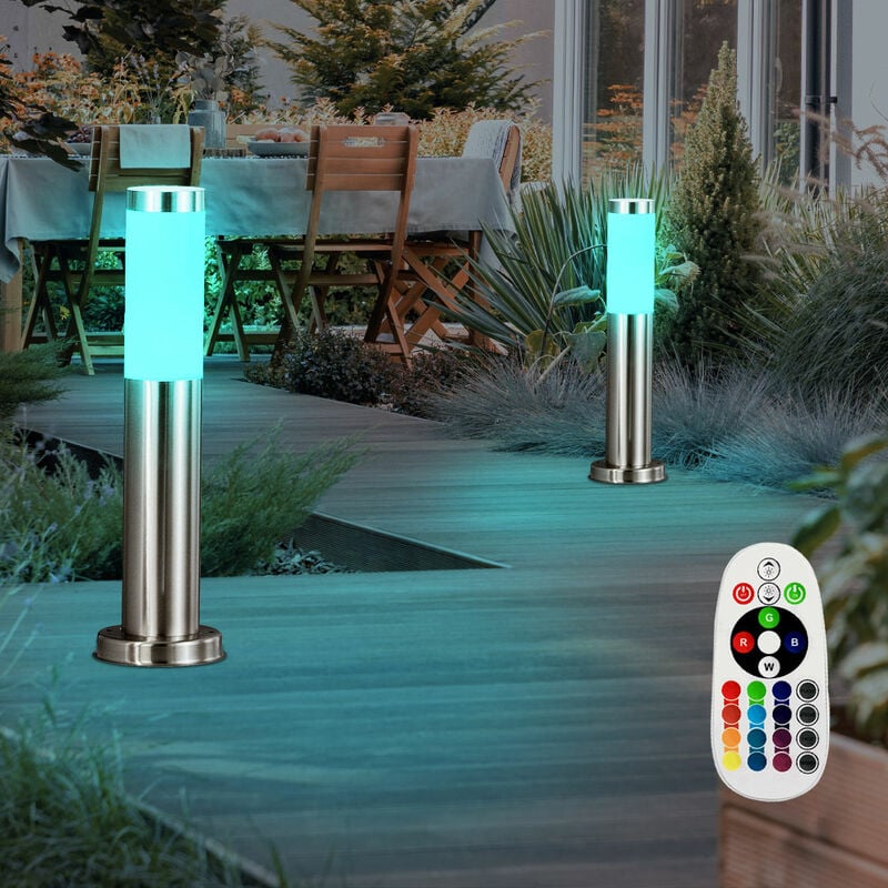 Descrizione Lampada da terra moderna in acciaio inox per esterni. Con molte di queste lampade da terra puoi, ad esempio, creare un percorso luminoso attraverso il tuo giardino o semplicemente mettere sotto i riflettori aree appropriate è quindi predestinato per l'uso esterno. La sorgente luminosa RGB può essere impostata in diversi colori tramite il telecomando in dotazione, garantendo così un'illuminazione d'atmosfera. Rispetto alle normali luci, I faretti a LED consumano solo una quantità minima di elettricità e hanno un consumo persino inferiore rispetto alle luci a risparmio energetico. Questo protegge l'ambiente e il tuo portafoglio. È inclusa una lampada LED YWatt da 9 $di alta qualità a risparmio energetico con telecomando per luce bianca e controllo RGB. La fornitura include due luci esterne. Dettagli lampada • Tipo di lampada: Lampada da terra • Materiale: acciaio inossidabile • Colore: argento • Paralume: policarbonato, bianco • Grado di protezione: IP44 • Dimensioni