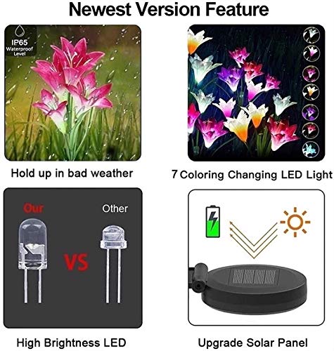▶ Ottima scelta per la decorazione del giardino: questa luce solare a fiori ha 4 gigli bianchi e 4 viola, realizzati con materiale in tessuto di alta qualità e led che cambiano colore, è una buona scelta per decorare il tuo giardino / cortile / prato e patio con questa luce.