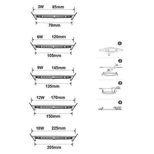 1) Potenza: 6 W Lunghezza: 120 mm Dimensione del foro: 105 mm Temperatura di colore: bianco freddo (6000-6500 K)