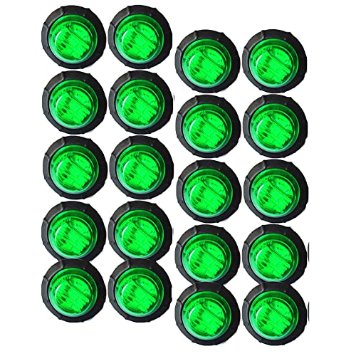 20 luci di indicatore laterali rotonde da 12 V/24 V, con LED da 3/4 pollici, indicatore luminoso luminoso di posizione per camion, rimorchio, furgoni, camion, autobus (verde)