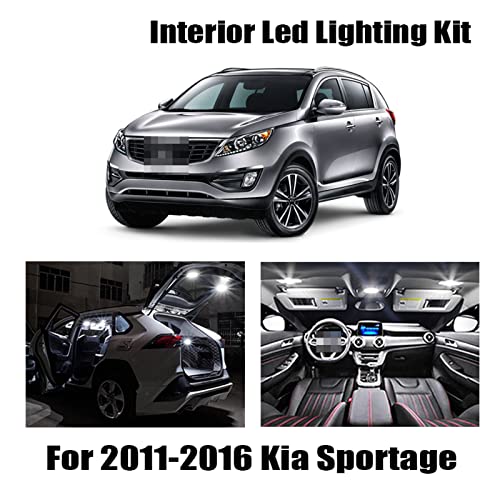 8x Kit luci interne a led senza errori Pacchetto accessori Mappa Dome Luce targa per bagagliaio, per Kia Sportage 2011-2015 2016 bianco
