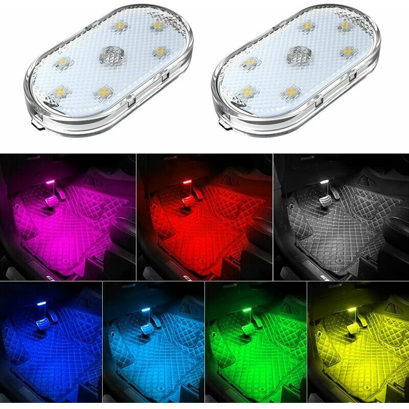 Effetto cool a sette colori: le luci tattili a LED per auto con ricarica USB, durante l'utilizzo, 7 colori possono essere modificati al tocco. Le luci interne per mini auto, le luci ausiliarie aumentano l'atmosfera, possono essere utilizzate come luci ausiliarie o luci d'atmosfera. Design integrato: paralume monopezzo, resistente all'acqua, alla polvere, ai graffi e all'usura. 6 LED ad alta luminosità integrati, la luce ausiliaria è chiara da vedere al buio. Facile da installare e utilizzare: la luce per auto a LED attira l'attrazione magnetica e il nastro biadesivo è facile da installare sul superficie dell'oggetto. Premi il centro delle luci per 1-2 secondi per accendere/spegnere la luce, premi di nuovo per cambiare il colore della luce. Ricarica comoda e veloce: dimensioni ridotte, può essere installata in auto o come luce domestica, non occupa spazio, basta rimuovere delicatamente le luci collegate e ricaricare tramite interfaccia USB. Sono necessari solo 40 minuti per caricare