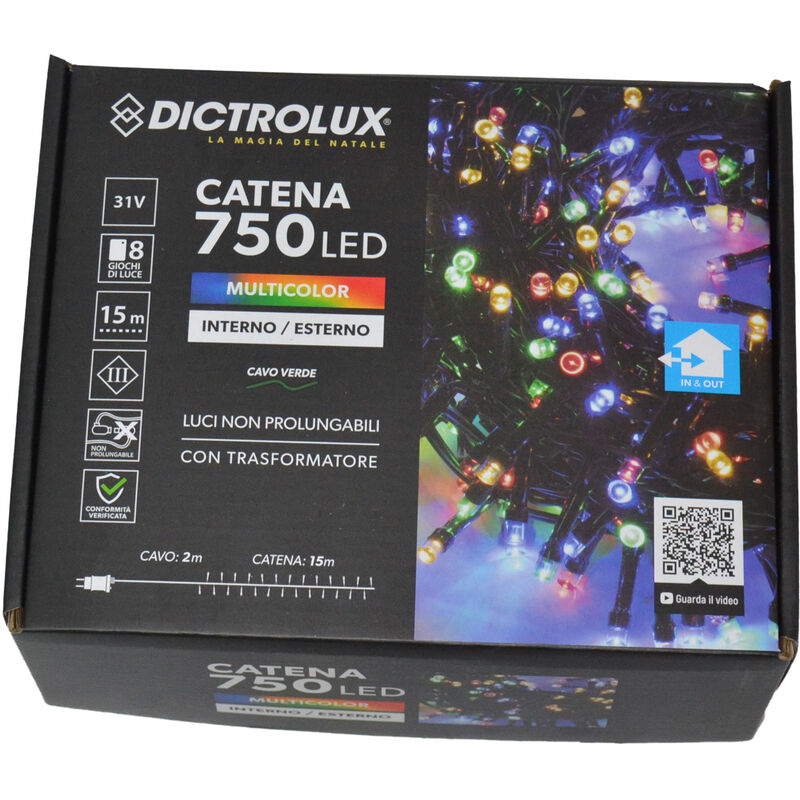 Luci programmabili - 750 Led - Multicolore - Per uso interno ed esterno - 8 giochi di luce - 15 mt di led Luci programmabili 750 led multicolore luci natalizie per uso esterno ed interno con trasformatore 8 giochi di luci a LED 15 metri di luci e 2 metri di cavo NON prolungabile.