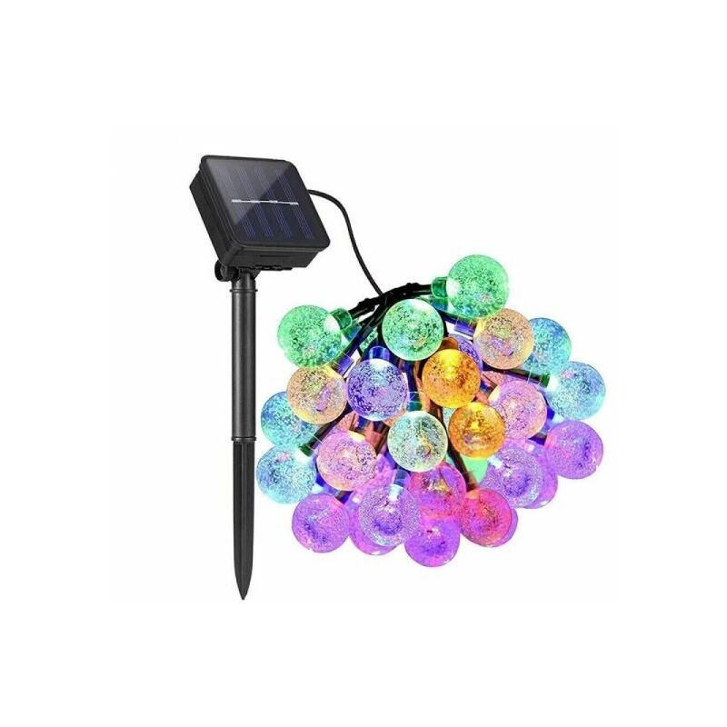 Descrizione prodotto Catena luminosa energia solare da esterno 60 luci led 11Mt luce multicolore QP11M60 Catena luminosa da esterno formata da 60 luci Specifiche Batteria ricaricabile tramite pannello solare Capacità batteria: 600mAh Pannello con picchetto Distanza tra le luci: 15cm Lunghezza totale: 11 metri circa 8 modalità di illuminazione Colore luce: multicolore