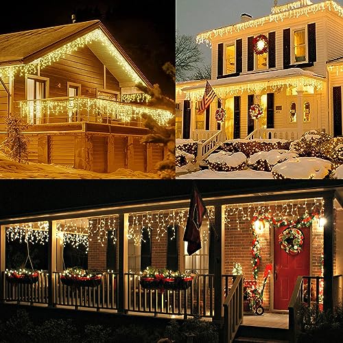 Luci di Natale da Esterno Cascata 5m 200LEDs Tenda Luminosa Natale con 8 Modalità, Timer, Funzione di Memoria, IP44 Impermeabile, Luci Natale Esterno per Balconi, Gronda, Feste, Bianco caldo