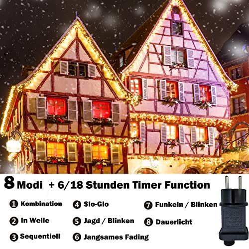 【IP44 impermeabile】Le luci a stringa sono perfette per l'uso interno ed esterno, come finestre, balconi, giardini, terrazze sul tetto, ringhiere, gazebo, ecc. Altre idee di decorazione per il prossimo Natale. (Nota: 1. La spina non è impermeabile 2. All'apertura della confezione potrebbe esserci un odore, poiché le luci sono nuove di zecca e l'odore scomparirà dopo qualche giorno).