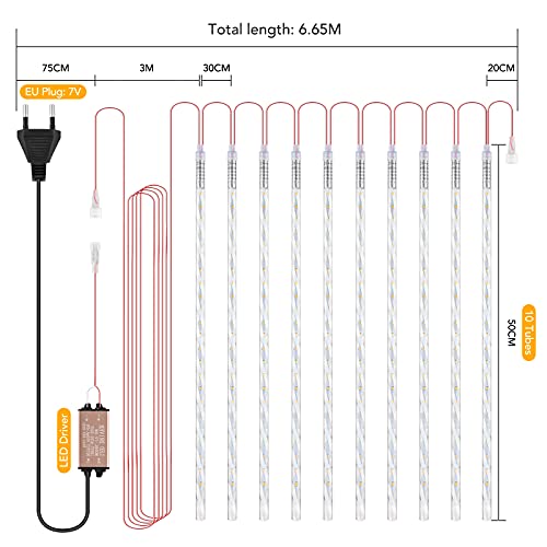 Luci Natale Esterno Cascata, AUINSKY Pioggia di Luci Led 50 cm 10 Tubo 480 Led Impermeabile Luci a Pioggia Natalizie da Esterno, Adatta per Feste, Natale, Decorazione del Giardino di Casa