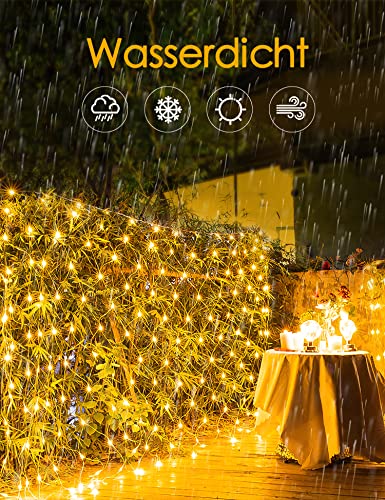 Luci di Natale da Esterno,200 LED Rete di Luci 3Mx2M Catena Luminosa Telecomando Luci Natalizie Tenda Luminosa Esterno 8Modalità Decorazioni Natalizie per Albero di Natale Giardino Casa Bianco Caldo
