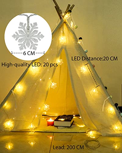 Luci Natale Fiocco di Neve a Batteria, Litogo 6m 20LED Luci Albero Fiocchi di Neve 2 Modalità Impermeabile Catena Luminose LED Esterno/Interno con Fiocchi di Neve Decorative per Natale, Casa, Feste