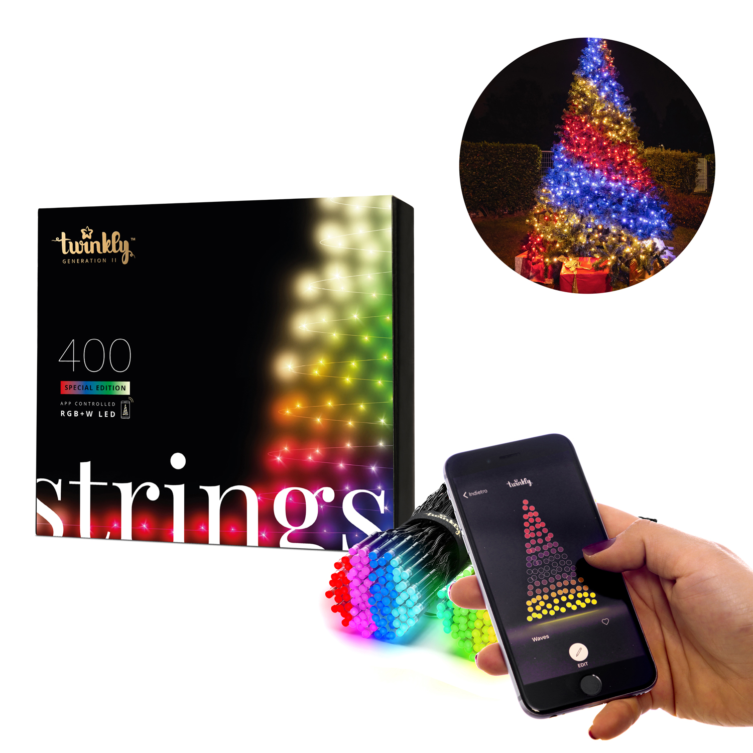 Rivoluziona le tue luminarie natalizie con le luci Twinkly Smart RGB Special Edition! Formate da una stringa LED, controllabile tramite App, le luci Twinkly uniscono la bellezza delle luci natalizie a innovativi colori RGB. La stringa combina 400 LED AWW che potrai controllare dal tuo smartphone, creando incredibili effetti luminosi. Dotata di speciali lenti trasparenti a testa piatta con strato opaco che intensificano gli effetti di luce, Twinkly Smart RGB Special Edition può essere controllata anche tramite telecomando, selezionando gli effetti predefiniti. La tecnologia di mappatura Computer Vision e la possibilità di creare effetti a tempo di musica con Twinkly Music Dongle completano queste innovative luminarie, compatibili con Google Assistant e Alexa. Adatte per uso esterno, grazie alla tecnologia IP44 weatherproof. Con Bluetooth e WiFi, timer accensione e spegnimento e regolatore di luminosità. Lunghezza 32m.